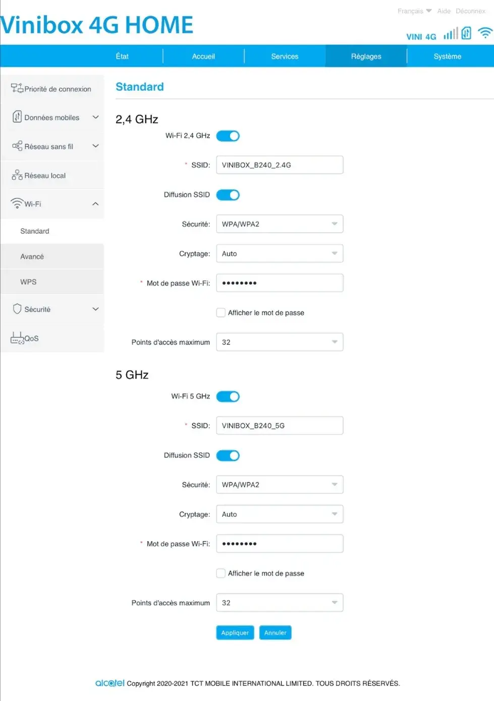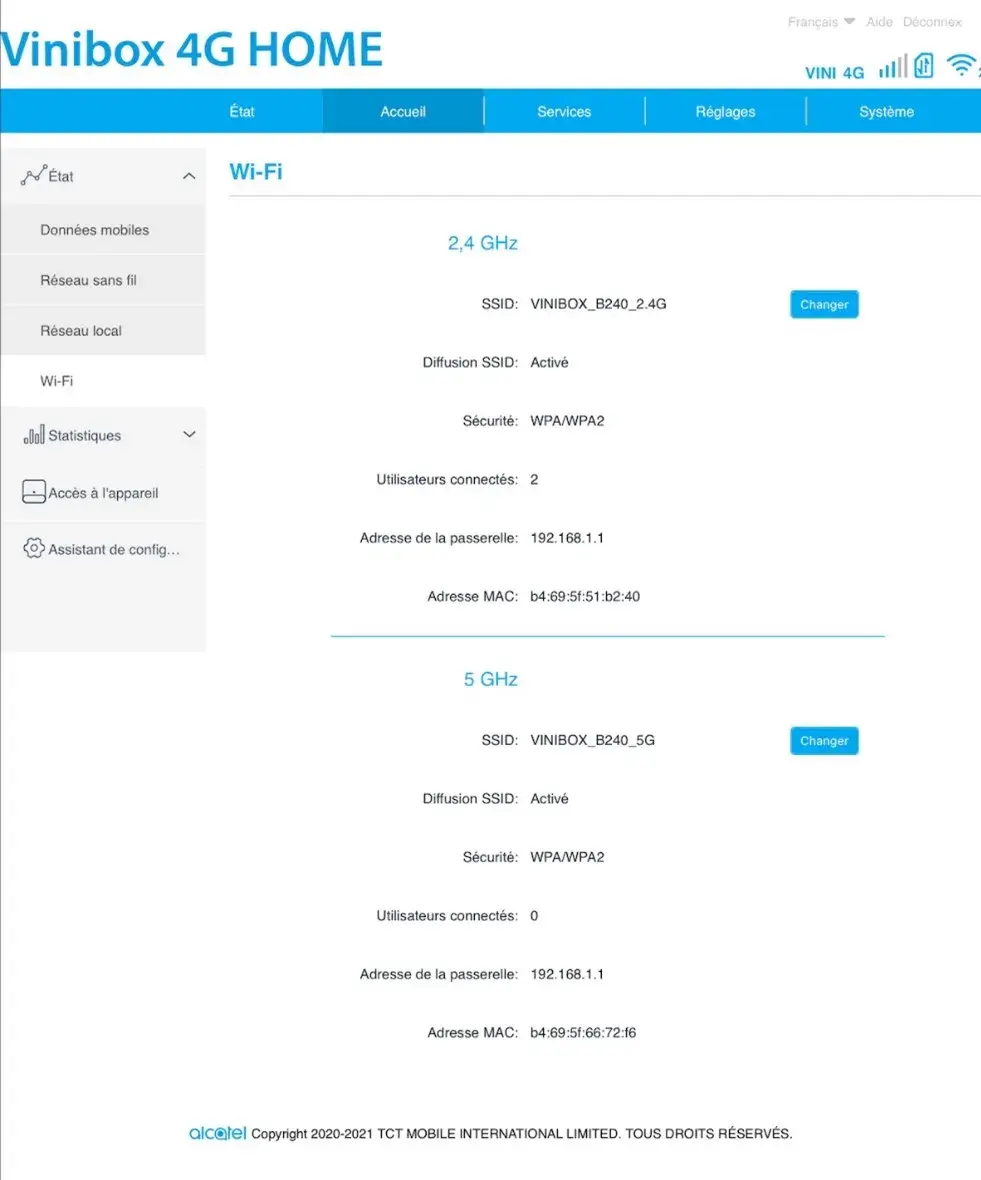Modification du mot de passe Wifi