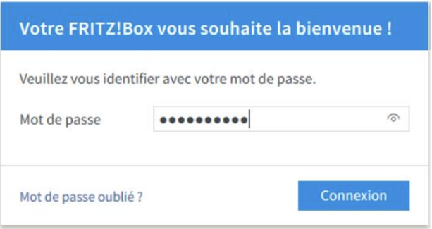 Etape 4 : Une page d’authentification apparait. Saisissez le code « Vinibox password » inscrit sous le routeur Vinibox Fritz!