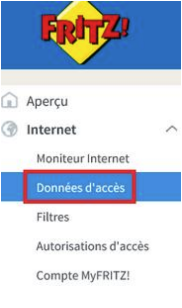 Etape 6 : Une fois redémarré, allez dans le bandeau à gauche, ouvrez le menu Internet et sélectionnez Données d’accès