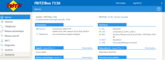 4 - Sur la page « Aperçu » du routeur, cliquez sur le bouton « WiFi » dans les interfaces, ou dans le menu de gauche, sur « Réseau sans fil », puis sur « Sécurité ».