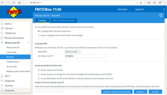 5 -  Modifiez la clé réseau sans fil, et cliquez sur Appliquer.