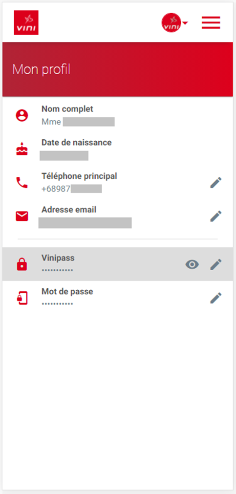Vous pouvez visualiser votre Vinipass actuel en cliquant sur l’icône