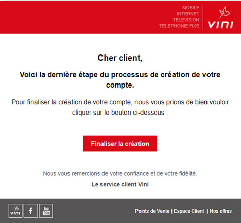Remarque : cette adresse email vous servira à vous identifier à votre Espace Client par la suite.