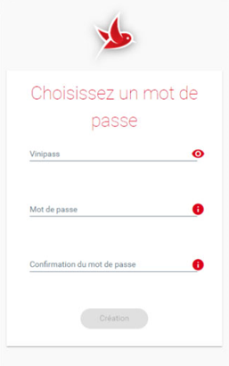 Pour des raisons de sécurité, saisissez à nouveau votre Vinipass et définissez votre mot de passe. Enfin, validez pour finaliser la création de votre compte.