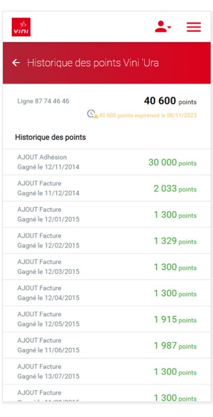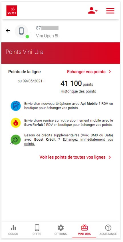 Consulter les points de fidélité Vini ‘Ura d’une ligne mobile