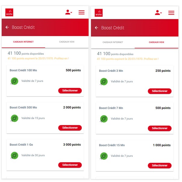 Vous pouvez également consulter l’historique des points pour chaque ligne et utiliser vos points pour du crédit supplémentaire grâce à Boost Crédit.