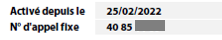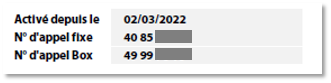 Cette zone indique les informations concernant la date de mise en service de votre ligne, votre numéro de téléphone fixe.