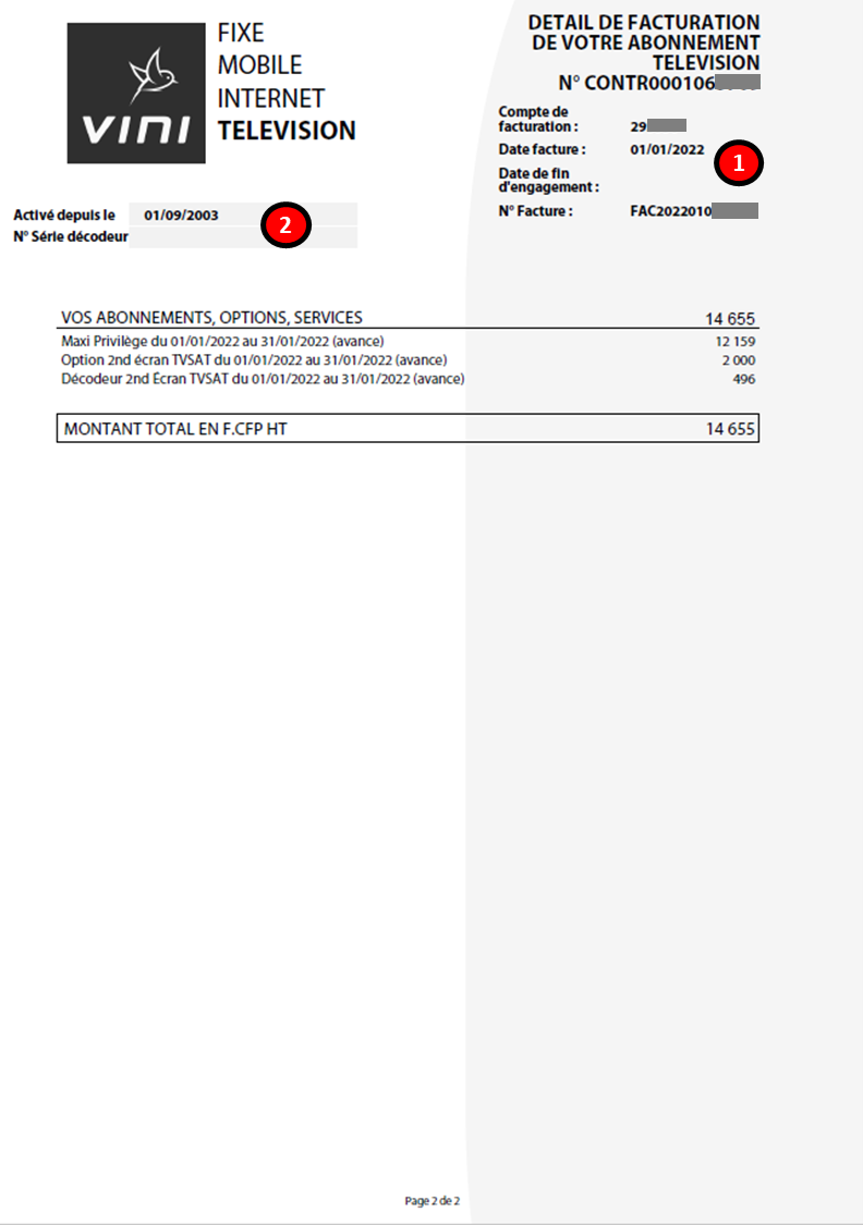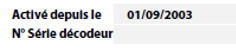 Cette zone indique les informations concernant la date de mise en service de votre ligne, votre numéro de série décodeur.