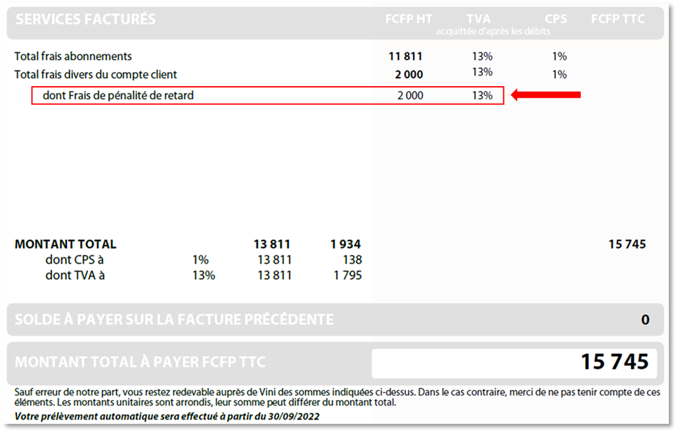 Dans le cas où vous auriez un retard de paiement, voici où les pénalités apparaîtrons :