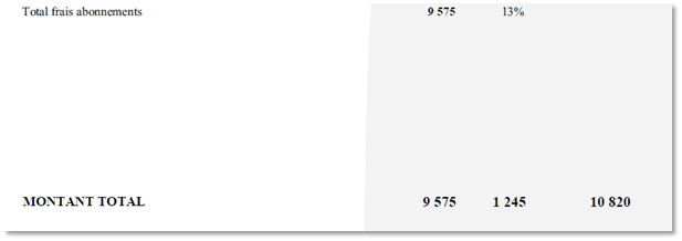 Ce montant indiqué sur les pages annexes de votre facture est hors taxes.