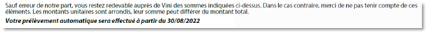- Comprendre les différentes zones du détail de la facture Vini