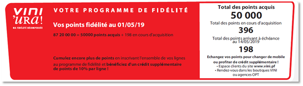 - Total des points arrivant à échéance au 01/05/2019 : indique le nombre de points que vous allez perdre car ils ont dépassé leur période de validité (30 mois).
