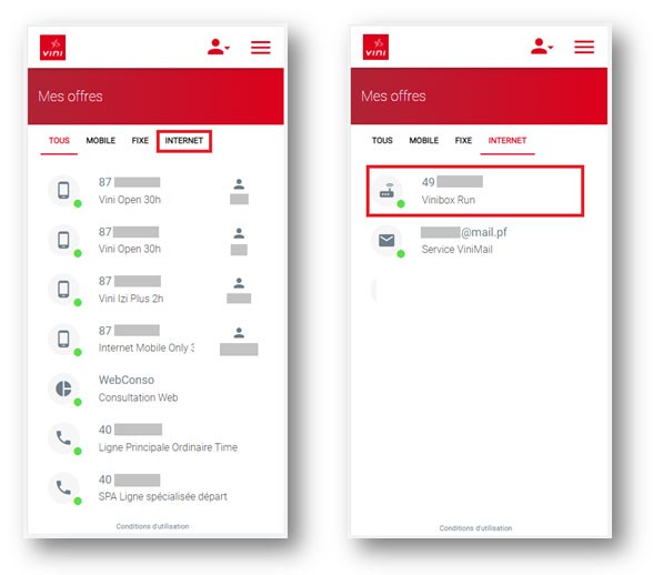 Après vous être connecté à votre Espace Client, sélectionnez vos offres internet.