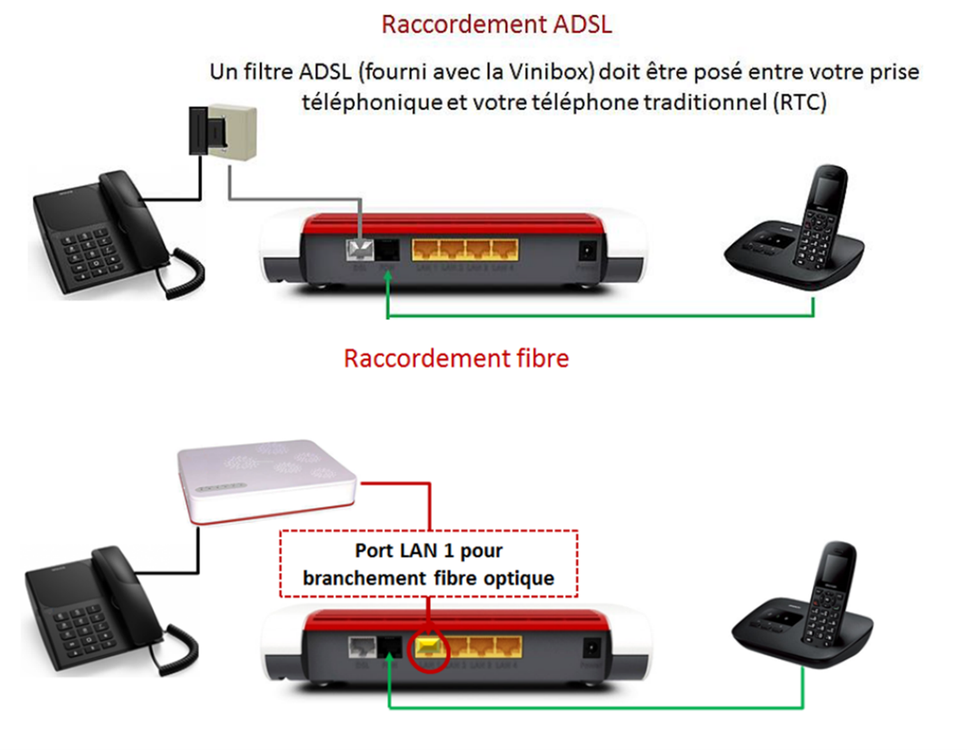 Pour l’utilisation de la Téléphonie sur IP, votre combiné doit absolument être relié à votre routeur Vinibox.