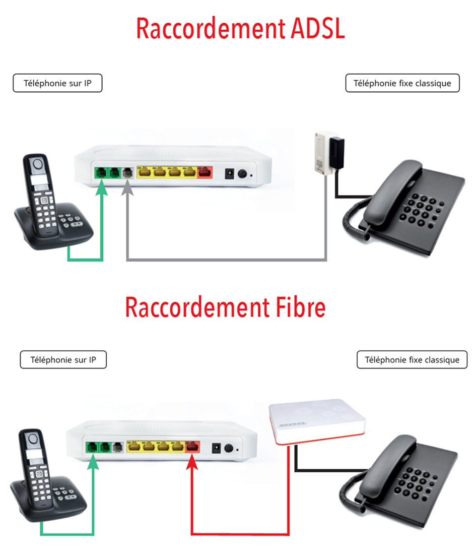 Si vous branchez votre combiné directement sur la prise téléphonique ou bien sur le modem ONT (dans le cas d’un abonnement fibre), votre téléphone utilisera le réseau de téléphonie fixe.