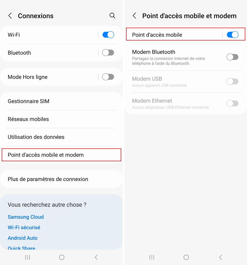 Pour activer le Partage de connexion sur votre téléphone Android :