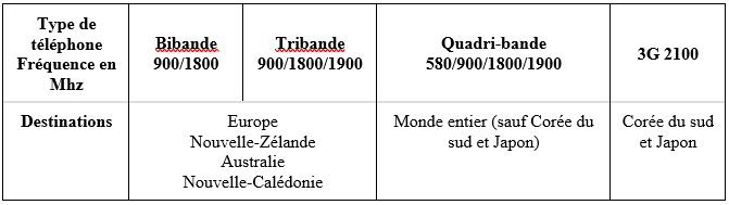 Les mobiles fonctionnent sur des fréquences spécifiques, d’où la distinction entre téléphones bi-bande/tri-bande/quadri-bande/3G ou 4G.