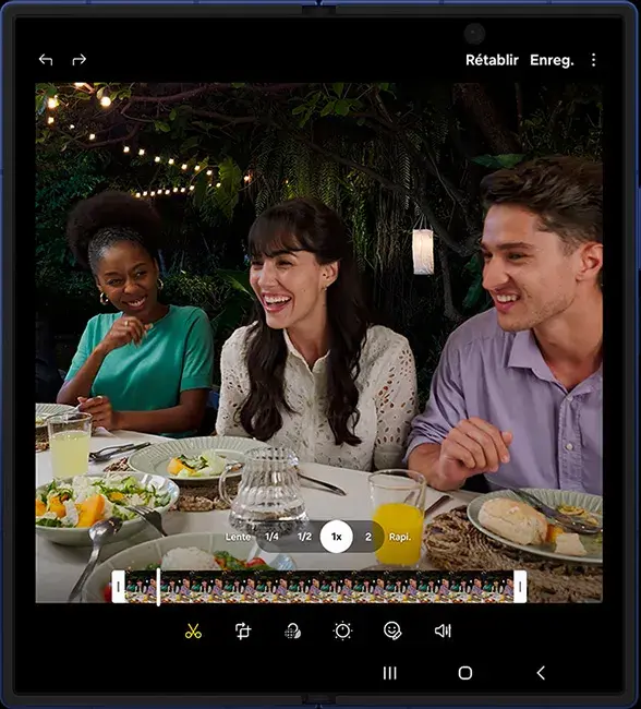 L'immense écran pliable du Galaxy Z Fold7 offre tout l’espace nécessaire pour monter vos vidéos jusque dans les moindres détails. Vous pouvez alors filmer, éditer et partager, où que vous soyez.