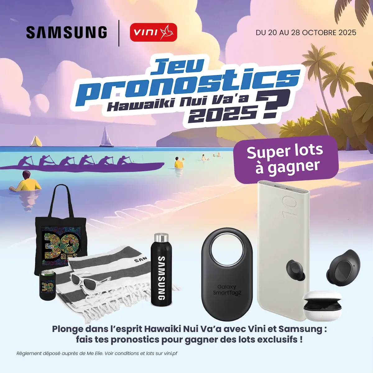 Du 29 septembre au 30 octobre, souscrivez à une offre VINI mobile ou Internet ou achetez un produit SAMSUNG en boutique Vini / Tahitiphone, sur la boutique en ligne Vini ou en agence Fare Rata.
