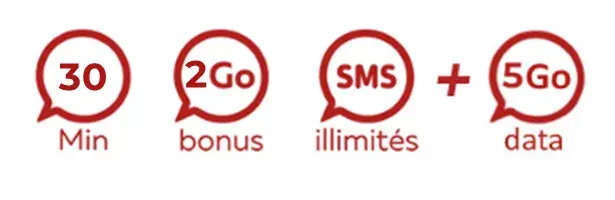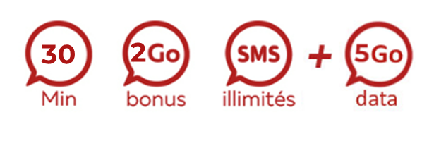• Un crédit tout inclus (Appels, SMS et Internet Mobile), des SMS illimités et jusqu'à 7 Go utilisables 30 jours,