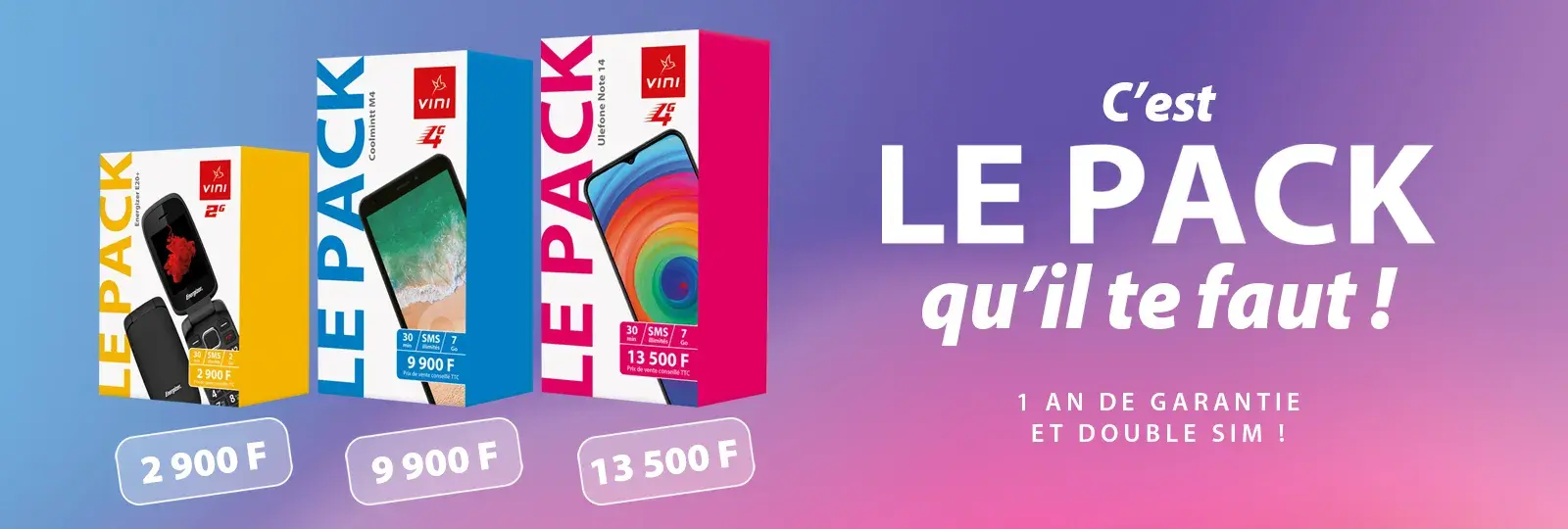 • Une carte Vinicard 4G  prête à l'emploi pour le pack avec le téléphone à touche (pack de 2 900 F)