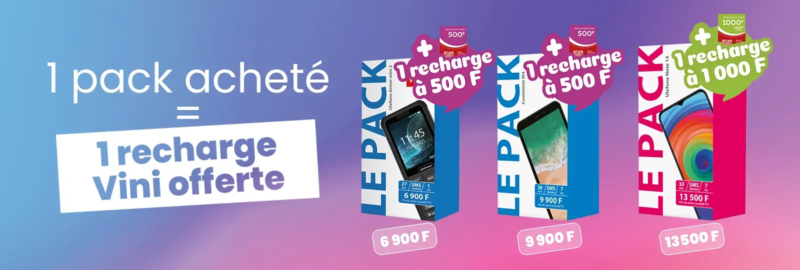 • Recharge 1 000 F offerte sur le pack à 13 500 F.*