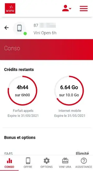 L’application vous permet de gérer toutes vos offres facilement : consulter votre encours de consommation, changer d'offre, gérer vos options, payer votre facture en ligne, recharger une ligne mobile, etc.