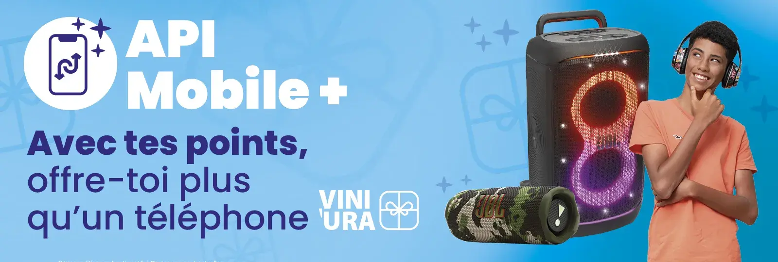 Pour tous les adhérents au programme de fidélité Vini ‘Ura, utilisez le service Api Mobile + et faites-vous plaisir pour acheter un accessoire* connecté en bénéficiant d'une remise attractive !
