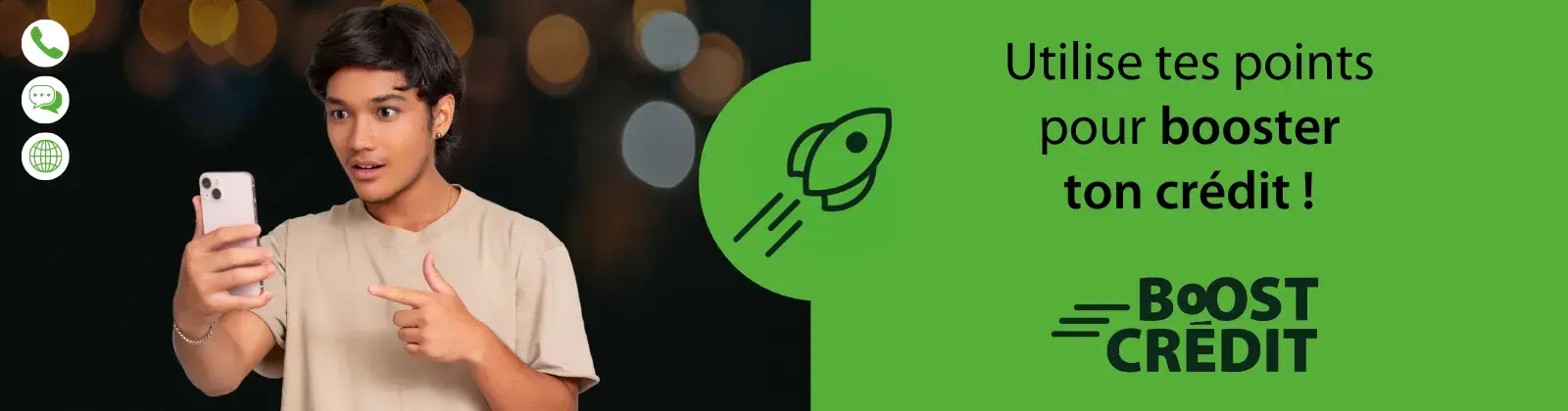 Pour plus de facilité, connectez-vous à votre espace client pour choisir directement le pack Boost Crédit : Voix, SMS, Internet Mobile … à vous de choisir !