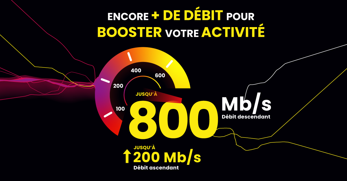 Des offres allant jusqu’à 800 Mb/s en download et jusqu’à 200 Mb/s en upload.