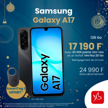 Pour l'achat d'un Samsung Galaxy A17, un motorola Smart Tag 2 offerts (valeur 4 990 F - 500 pièces)
