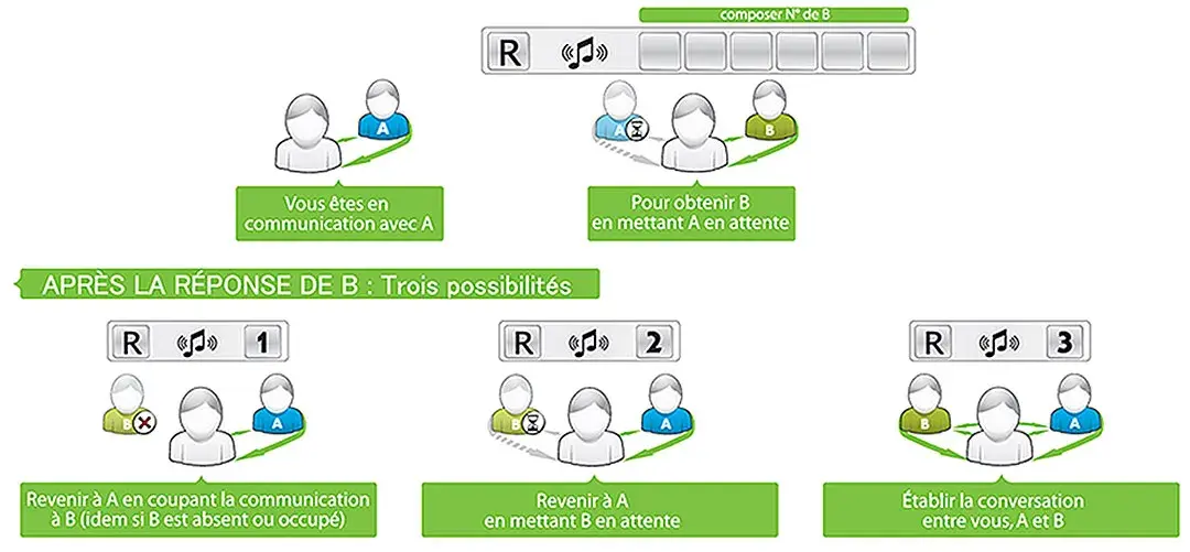 Le service conversation à trois fait partie des services contact qui sont pré-installés sur la ligne téléphonique.